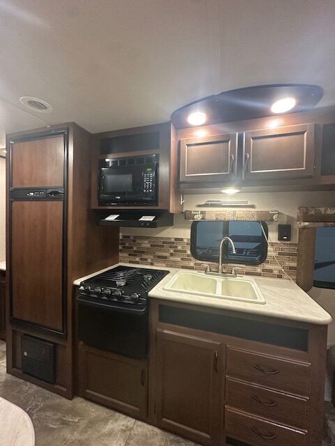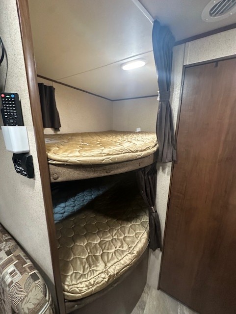 This bunk house is in great condition. Power awning, power tongue jack, New tires, exterior speakers, exterior fridge. Sleeps 8-10